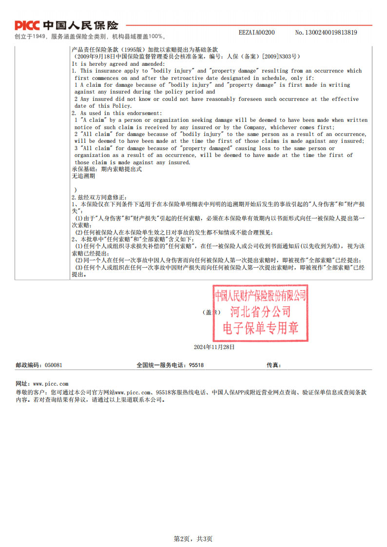 PICC保险单